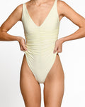 One-piece swimsuit with wide straps and center ruching for a flattering silhouette. Perfect Fit that enhances your shape and provides all-day comfort. Ideal for combining style and support at the beach or pool.