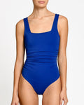 One-piece swimsuit with draping at the waist that flatters the silhouette. Featuring wide straps for extra support and a perfect Fit, offering all-day comfort.