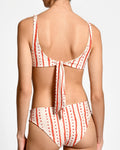 This sustainable bikini bottom is made from approximately 8 recycled plastic bottles.